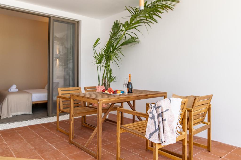 At Li Mango, you can experience a delightful stay in the heart of Kos Island, Greece, with a range of beautifully designed rooms to choose from. The Deluxe Double Room with Balcony, Terrace, and Sea View offers a spacious and inviting ambiance, spanning 25 square meters. With two comfortable double beds, it is perfect for families or groups of friends seeking a relaxing retreat. Alternatively, the Deluxe Room provides a cozy haven, measuring 20 square meters and featuring a luxurious queen bed. Both room types promise a tranquil atmosphere and a restful night's sleep. Booking your stay at Li Mango through Agoda ensures you the best prices and a hassle-free experience, allowing you to enjoy your vacation to the fullest.