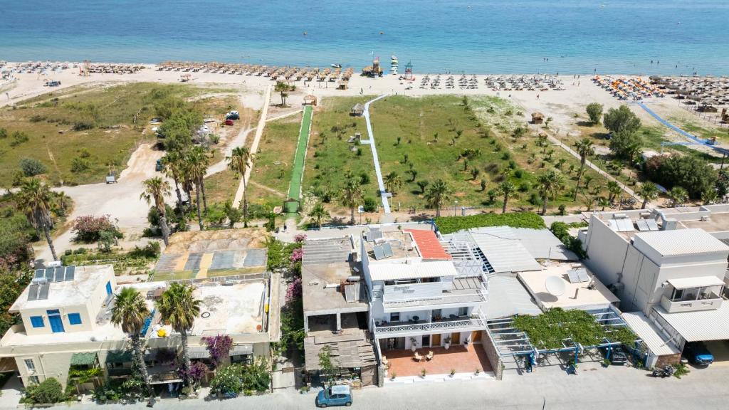 As you step onto the soft white sand, you'll be greeted by the crystal-clear turquoise waters of the Aegean Sea, inviting you to take a refreshing dip or indulge in various water sports activities. The beach is well-equipped with sunbeds and umbrellas, ensuring a comfortable and relaxing experience for visitors.