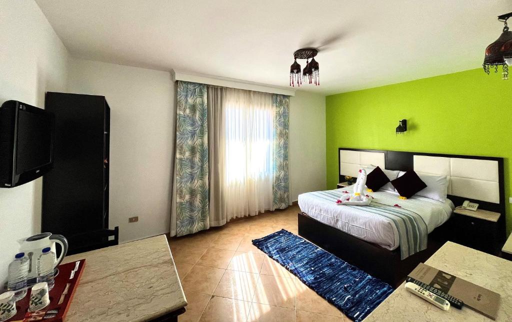 The location requires a bit of walking to reach the beach, but you can enjoy the clean and beautiful sea of the Red Sea while swimming with tropical fish. It offers a private beach with good cleanliness and breakfast that is reasonably priced. However, some staff members have slightly deceitful attitudes that feel like they are trying to scam you. They are very unkind, especially at the reception, which is unbelievably arrogant and lacks friendliness, even misspelling the private beach.