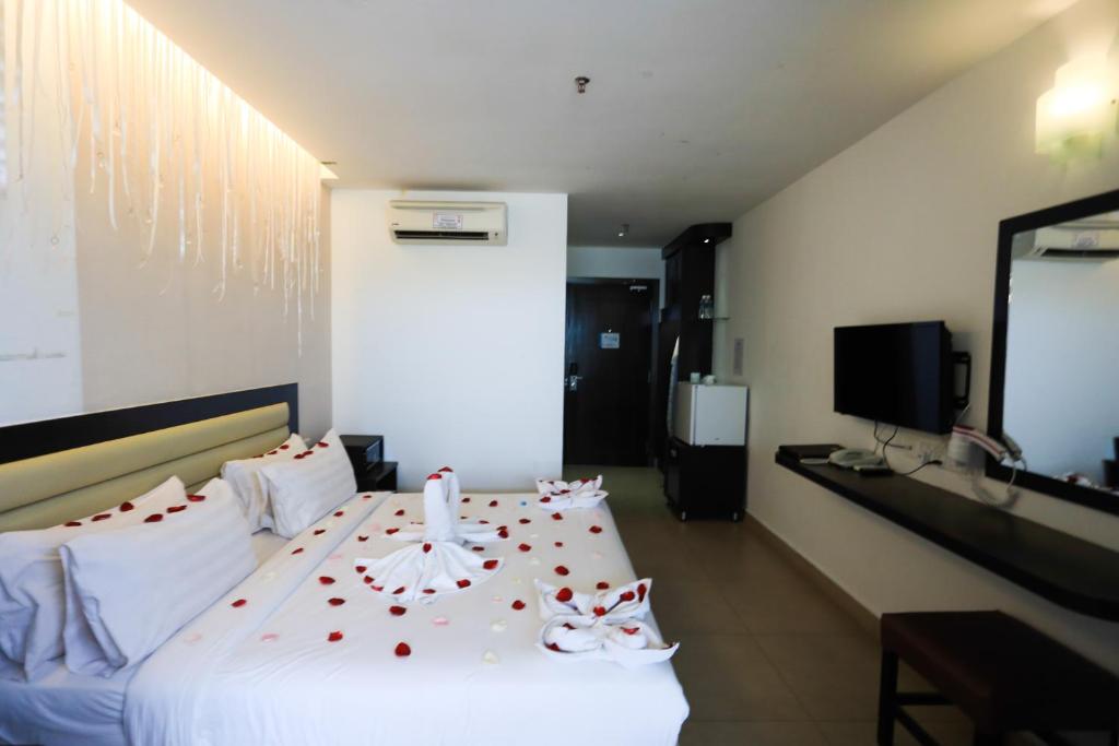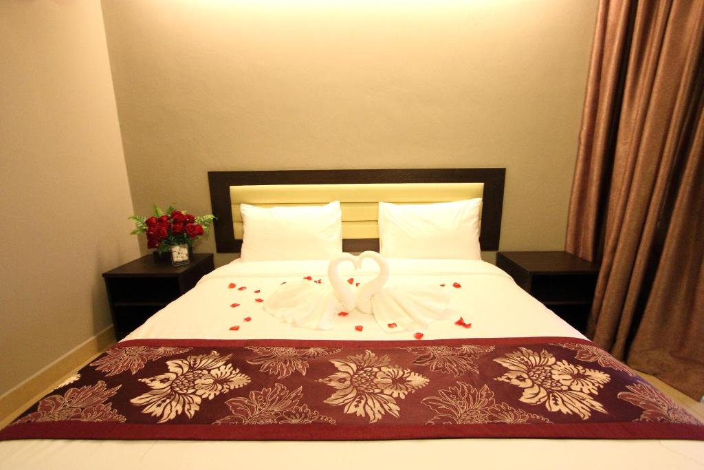 Honeymoon suite Deposit - Rm100 (cash only)standby siap2 Staff majoriti - India Lobby - ok tak kecik tak besar , toilet ada di bawah , senang cari (cuma di dalam toilet tiada pengudaraan ) Lift - tak besar tak kecik , just nice Koridor - tiada bau cuma kalau bagus ac kena bukak bagi tiada bau kepam or bau karpet Surau - ada surau untuk traning staff luar (good lah sebab hotel tak besar mana tapi ada surau ) Bilik - ok , tak besar tak kecik , cukup untuk 2 couple dan 1 anak kecik(anak saya 3 tahun) kalau nak solat masih ada ruang , clean Tandas - clean , ada berus gigi , sabun mandi dan syampu , tuala mandi , tuala lap kaki Ruang tidur - dalam gambar ada ballon tergantung di silling tapi saya masuk tiada apa2 hiasa , hantar swan di atas katil , taburan bunga roses .. Gift - boleh bawak balik bunga , buah yang di hidang dengan air bicarbonate Jacuzi - sangat besar dan sesuai 3 beranak main , puas hati , ruang selesa sebab dia pisah dengan bilik , ada meja kecik 2 kerusi untuk santai2 cuma tiada pemandangan luar suasana - bunyi anjing kerap jugak , maybe boleh kurangkan anjing berkeliaran di kawasan hotel sarapan - saya ambil pakej sekali bilik 2 pack , makanan ok , saya dapat Menu sarapan Nasi Lemak Rendang Ayam Bihun Goreng singapore (tak pedas) Mee Goreng Wedges (sos mayonis cheese) Baked beans Roti Bakar Fresh Oren Mineral Water Kopi Tea Desert - pau , kek , puding Pool - ada dewasa + kanak2 bersih , tak besar tak kecil Gym - ada (sesuai 2/3 orang sekali masuk) Parking - tak kecik tak besar , bas boleh park 1/2 bas Depan hotel ada gerai goreng pisang + gerao burger Berdekatan dengan Glory Beach Resort