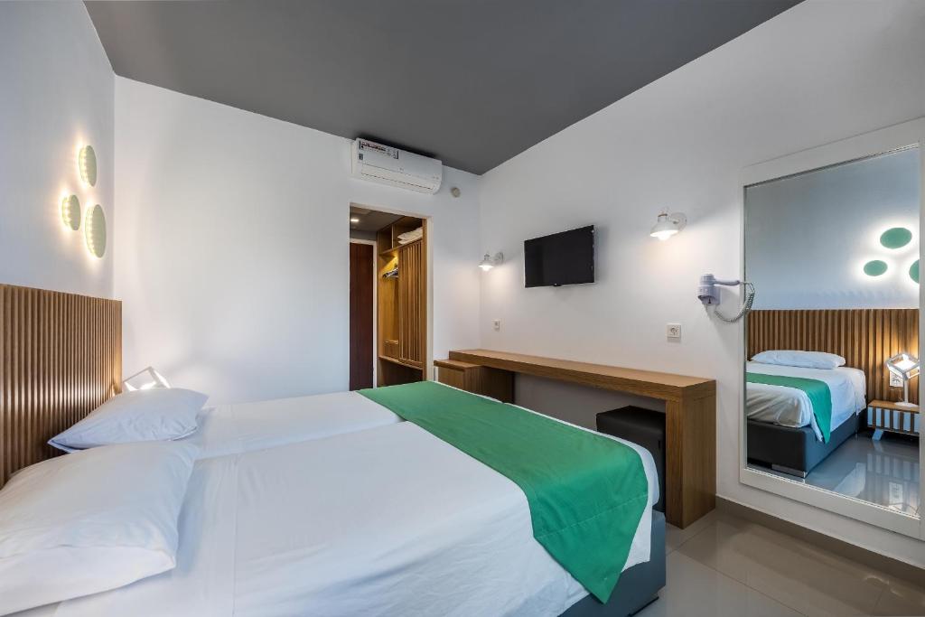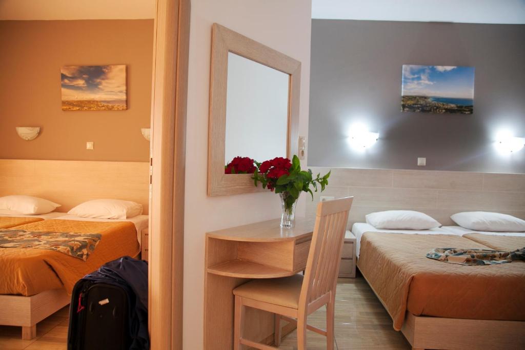 Zeus Hotel offers a variety of thoughtfully designed rooms to suit every traveler's needs, including Double or Twin Rooms, Triple Rooms, Superior Family Rooms, Superior Double Rooms, and Deluxe Double or Twin Rooms with Balcony. Whether you're traveling solo, as a couple, or with family, each room provides a comfortable and welcoming space for your stay on Kos Island. The range of sizes and bed configurations ensures you find the perfect accommodation tailored to your preferences.